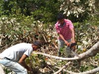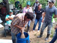 Uma das atividades de trabalho coletivo decorreu numa finca na aldeia de Santa Rosa onde foi feita a poda e limpeza de 1 hactar de cacau em sistema agroflorestal e contou com a presença da equipa do projeto e de produtores locais e de outros municípios. Noutras ocasiões os produtores juntaram-se para a produção e aplicação de fertilizantes e pesticidas biológicos e para a realização de processos pós colheita. O acompanhamento e apoio prestado pela equipa técnica do projeto a estas atividades representa também uma importante oportunidade formativa para a prestação de assistência técnica aos agricultores.