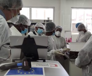 O Embaixador de Portugal em São Tomé e Príncipe, Luís Gaspar da Silva, a Embaixadora da União Europeia, Rosário Bento Pais, representada neste ato pelo Adido para a Cooperação em São Tomé e Príncipe, Albert Losseau, o Ministro da Saúde de São Tomé e Príncipe, Edgar Neves e o Representante do IMVF em São Tomé e Príncipe, António Lima, procederam, na manhã do dia 27 de agosto, à entrega de um extrator automático de ARN viral e dos 50 respetivos kits de extração ao Laboratório Nacional de Referência para análise da SARS-COV-2, na cidade de São Tomé, numa cerimónia que contou igualmente com a presença da Representante Residente da Organização Mundial de Saúde (OMS), Anne Ancia, e de alguns quadros dirigentes do Ministério da Saúde são-tomense.