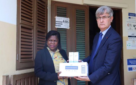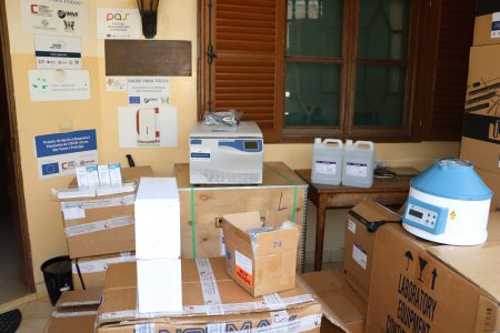 No âmbito do projeto “Saúde para Todos – Reforço dos meios complementares de diagnóstico laboratoriais em São Tomé e Príncipe”, realizou-se no dia 28 de julho, pelas 10h30, a entrega de equipamentos e reagentes para os laboratórios de análises clínicas, tanto ao nível central, no Hospital Dr. Ayres de Menezes, como ao nível distrital. O ato de entrega decorreu na sede do projeto Saúde para Todos, em São Tomé, e contou com a presença da Ministra da Saúde de São Tomé e Príncipe, Dra. Filomena Monteiro; do Embaixador de Portugal em São Tomé e Príncipe, Dr. Rui Carmo; da Adida para a Cooperação da Embaixada de Portugal em São Tomé e Príncipe, Dra. Paula Pereira; e do Representante do IMVF em São Tomé e Príncipe, Dr. António Lima.