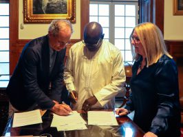 O IMVF e o Instituto Timbuktu – African Center for Peace Studies assinaram, no dia 12 de outubro, um Memorando de Entendimento para promover esforços conjuntos na área da produção de conhecimento, no que diz respeito à promoção e manutenção da paz em África. A assinatura decorreu na sede do IMVF com a presença do Dr. Bakary Sambe, Diretor Regional do Instituto Timbuktu e dos Administradores Executivos do IMVF, Dr. Ahmed Zaky, Dra. Carolina Quina e Dr. Jorge Morais.