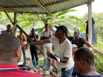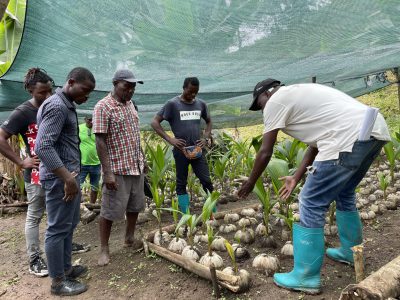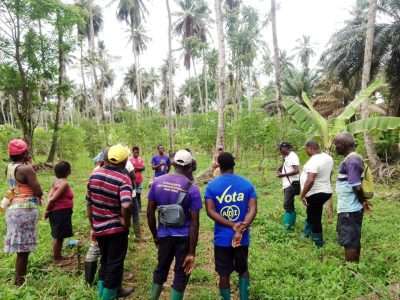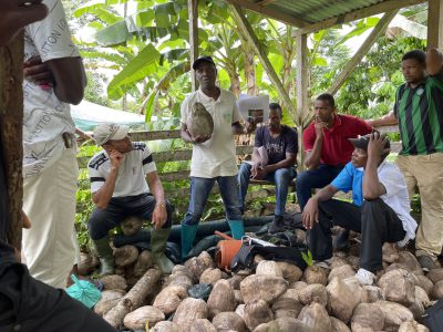 A equipa técnica do Projeto de Apoio às Fileiras Agrícolas de Exportação de São Tomé e Príncipe (PAFAE), em colaboração com os agentes de extensão rural do Centro de Apoio ao Desenvolvimento Rural (CADR) do Ministério da Agricultura, Pesca e Desenvolvimento Rural de São Tomé e Príncipe (MAPDR), iniciou em outubro as ações formativas dirigidas aos produtores de coco da zona sul de São Tomé e Príncipe, sobre os temas da construção e manutenção de viveiros, piquetagem, abertura de buracos e plantação de coqueiros. Foram discutidas as características morfológicas dos coqueiros de São Tomé, as condições ideais para o desenvolvimento de mudas de coqueiro, etapas e exigências para a construção de um viveiro de coco, seleção das sementes, gestão e manutenção do viveiro, fases de germinação, transplantação das plantas, distanciamento entre coqueiros, diversificação das culturas, abertura de buracos, entre outros. As formações iniciaram com a associação de Porto Alegre, e terão continuidade com as associações de Fraternidade, Dona Augusta, Micondo e Malanza.