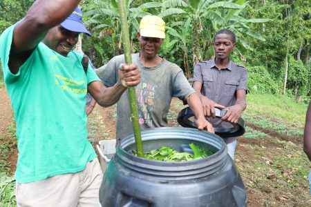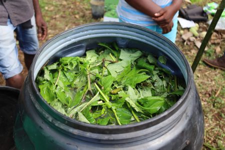 Entre maio e junho, foram realizadas 4 formações nas comunidades de Saudade, Monte Café, São José e São Carlos, que contaram, em média, com 20 horticultores, com uma vertente essencialmente prática. Durante as formações foi demonstrado o modo de preparação e de utilização do biofertilizante de ureia natural, bem como transmitidas várias informações sobre o tempo de conservação e alguns alertas a ter em conta na preparação e aplicação do mesmo.