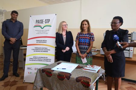 Por forma a dar resposta a uma necessidade identificada pelo MECC no que toca à dificuldade de alunos e professores em adquirir livros didáticos de suporte ao processo de ensino-aprendizagem, o PAISE-STP forneceu ao MECC um lote de equipamentos e consumíveis – nomeadamente, uma impressora de gráfica profissional, uma encadernadora de cola térmica, uma guilhotina elétrica e um computador – que vão permitir autonomizar o Ministério na reprodução de materiais didáticos, mas também de outros documentos relevantes para os diferentes setores do sistema educativo, conforme destacado pela Senhora Ministra na sua intervenção.
