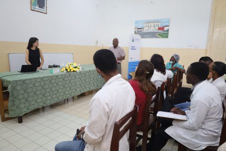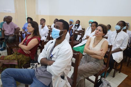 Na manhã do último dia da missão, foi dinamizada uma sessão formativa dirigida ao corpo clínico do HAM, dedicada ao tema “Abdómen Agudo”, seguindo-se a discussão de casos clínicos da urgência do HAM. Esta reunião promoveu o conhecimento e a troca de experiências entre os profissionais de saúde, contando com a participação ativa de todos.
