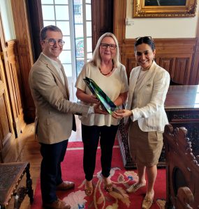 A Ministra Plenipotenciária da Embaixada da Colômbia, Martha Patrícia Medina Gonzalez, acompanhada pelo Dr. Fernando Evangelista, realizaram uma visita à sede do IMVF, no dia 26 de agosto, no quadro das estreitas relações de cooperação existentes.