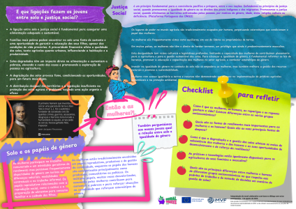 Mas a cadeia de efeitos e causas também pode ser invertida: A degradação dos solos é também um dos principais domínios que contribuem para a emergência climática. E que ligação podemos fazer entre a importância dos solos e a igualdade de género? E que ligação entre solos e justiça social? Partilhamos contigo a nossa primeira reflexão visual sobre estes temas, feita com jovens entre os 15 e os 22 anos.