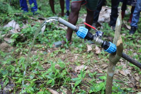 Já o projeto do Sistema de Rega, Captação e Distribuição de Água inclui 2 depósitos reativados/melhorados, para a condução de água em 3.3 km de canais de distribuição reabilitados, beneficiando um total de 60 produtores de pimenta, café, cacau e horticultores da comunidade de Água Sampaio. Este projeto apresentado pela Associação Valentes dos Produtores de Pimenta de Água Sampaio, também contemplou a criação de um Comité de Rega na comunidade, de forma a assegurar a sustentabilidade desta ação, tão importante para a cultura da pimenta, bem como para a horticultura.