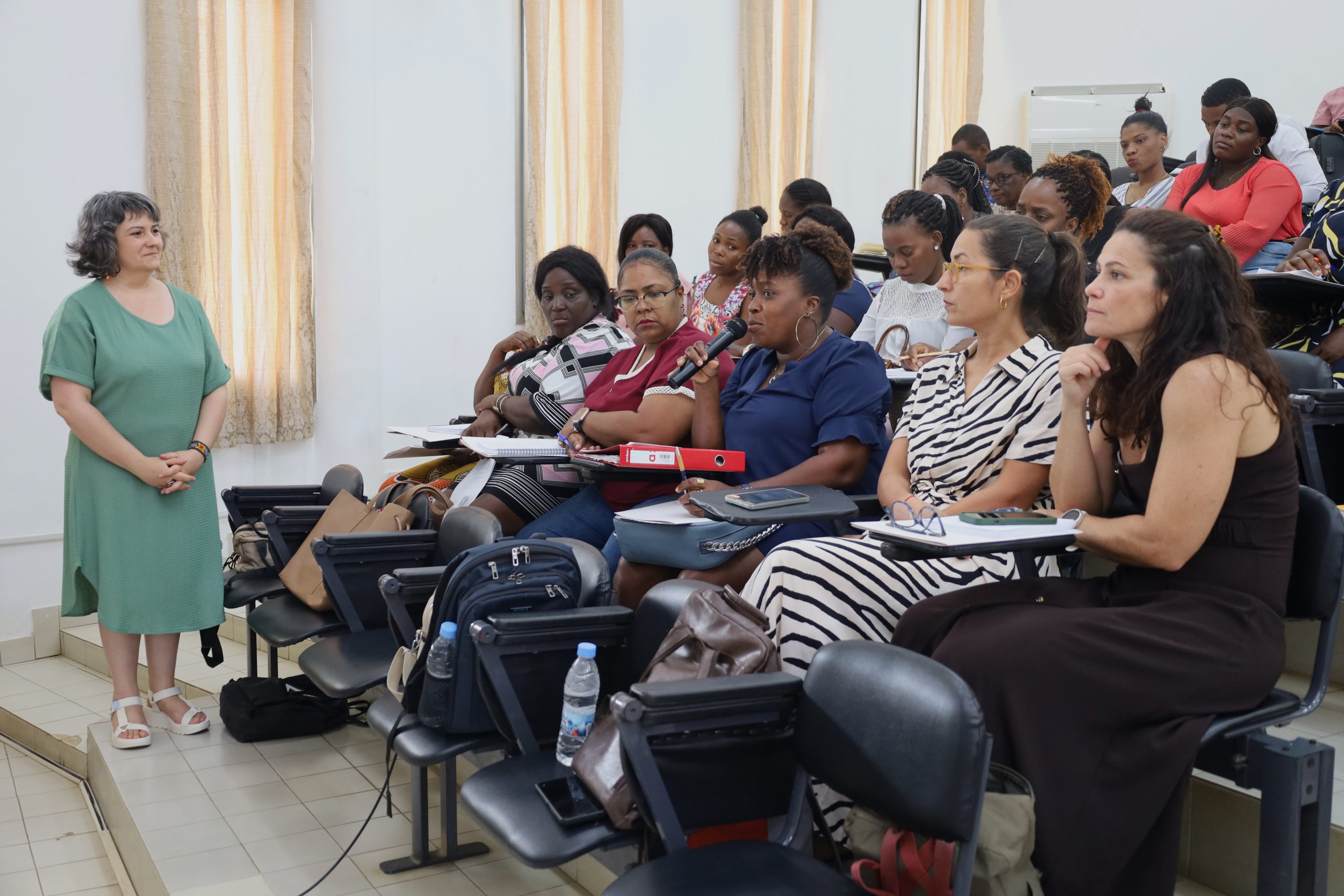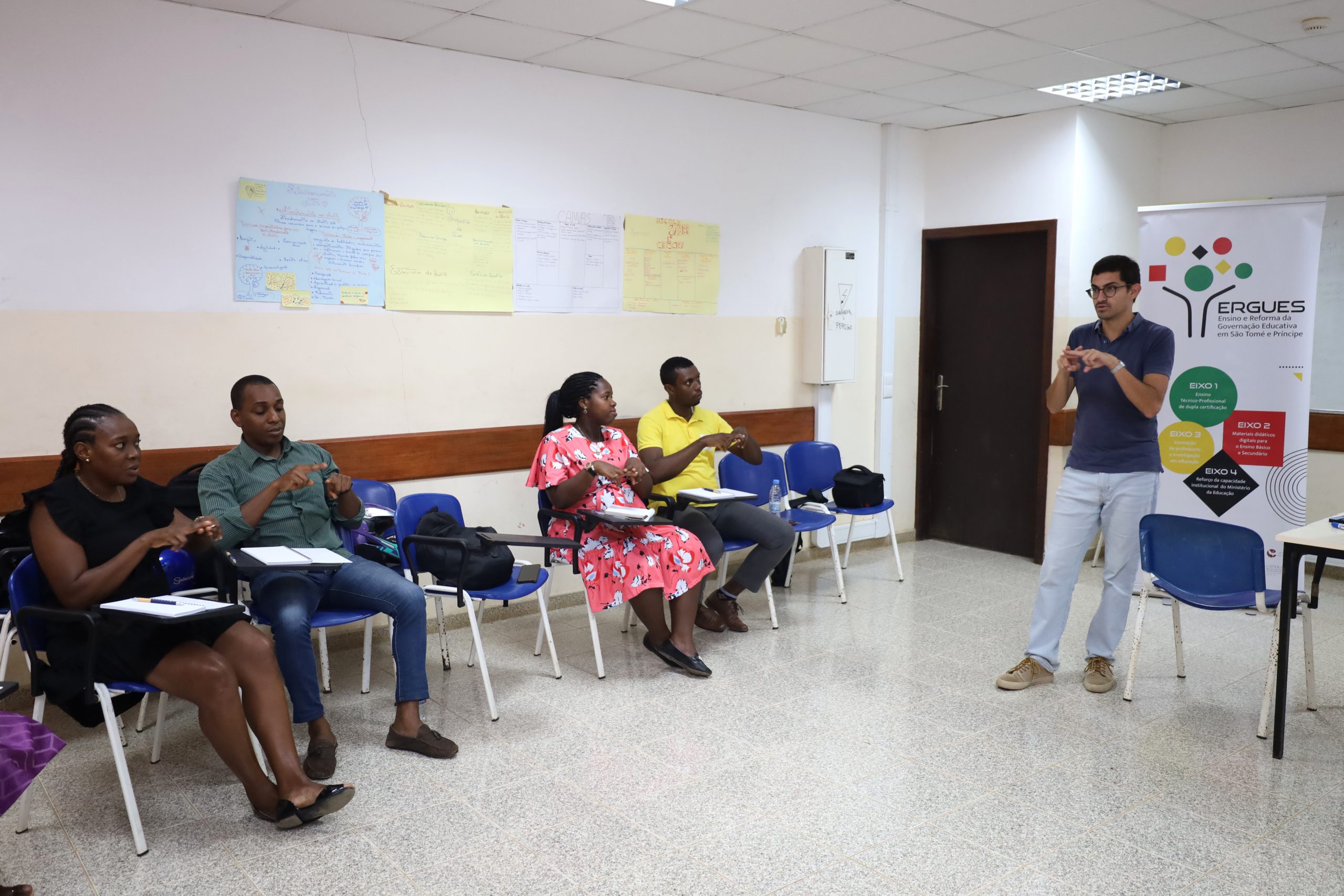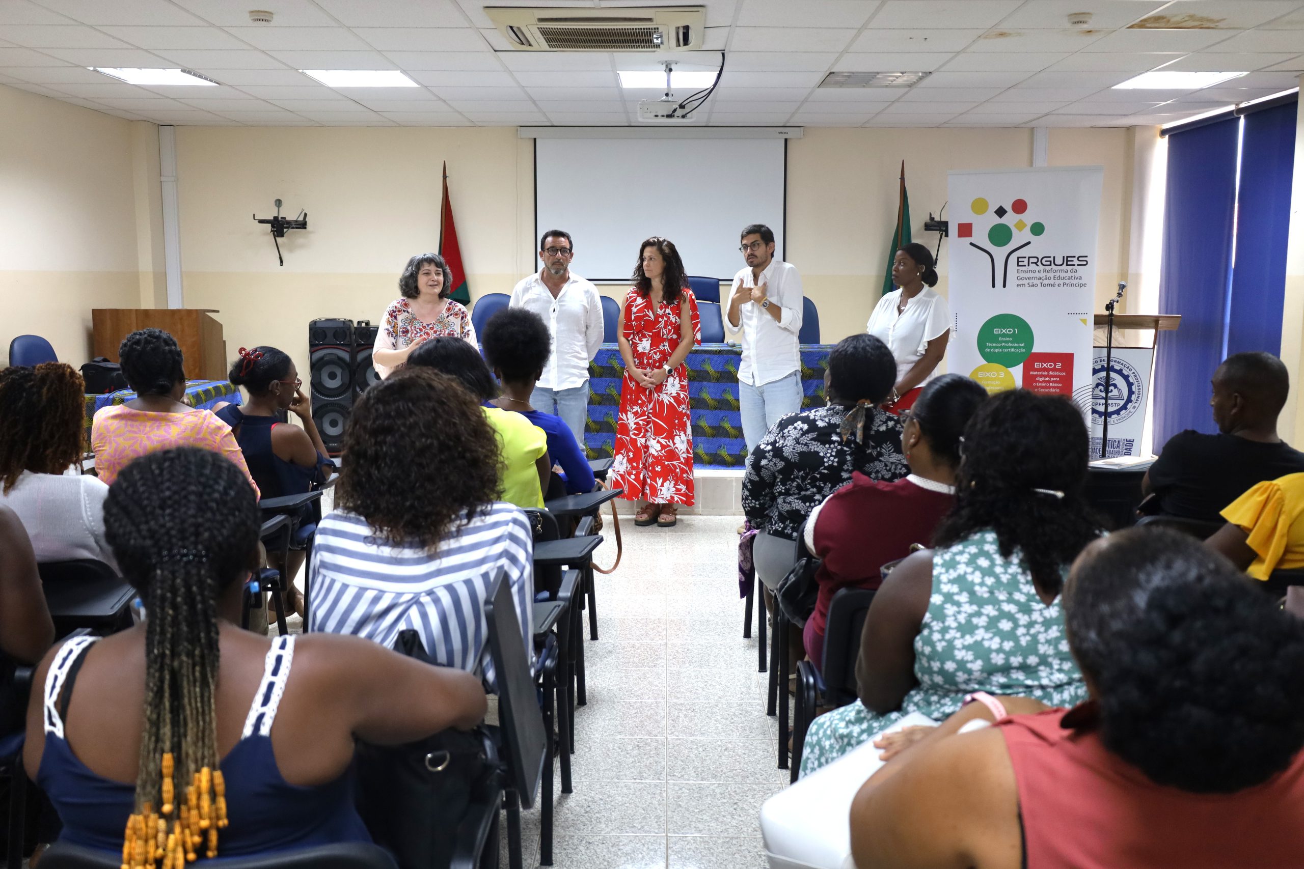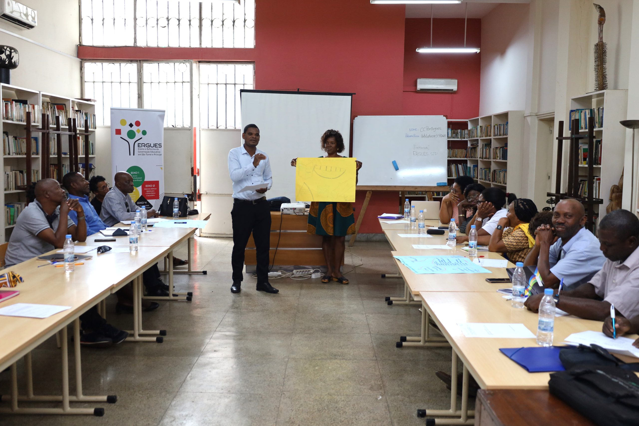 “Criar as melhores condições pedagógicas para que todos os alunos possam participar na aprendizagem e possam ter sucesso educativo” é, segundo a formadora Ana Artur, docente da Universidade de Évora, aquilo que se pretende alcançar através da metodologia de trabalho por projetos junto dos alunos do 1.º Ciclo do Ensino Básico em São Tomé e Príncipe. Estes workshops, também dinamizados pela docente Isabel Piscalho, do Instituto Politécnico de Santarém, foram dirigidos a orientadores pedagógicos do 1.º Ciclo do Ensino Básico, que se encontram agora mais capacitados com ferramentas teóricas e exemplos práticos – que poderão ser adaptados e replicados nas suas escolas – para apoiar os docentes na conceção e implementação de projetos pedagógicos com foco na promoção de uma educação mais inclusiva em sala de aula, favorecendo a autonomia, a participação e o pensamento crítico dos alunos no processo educativo.