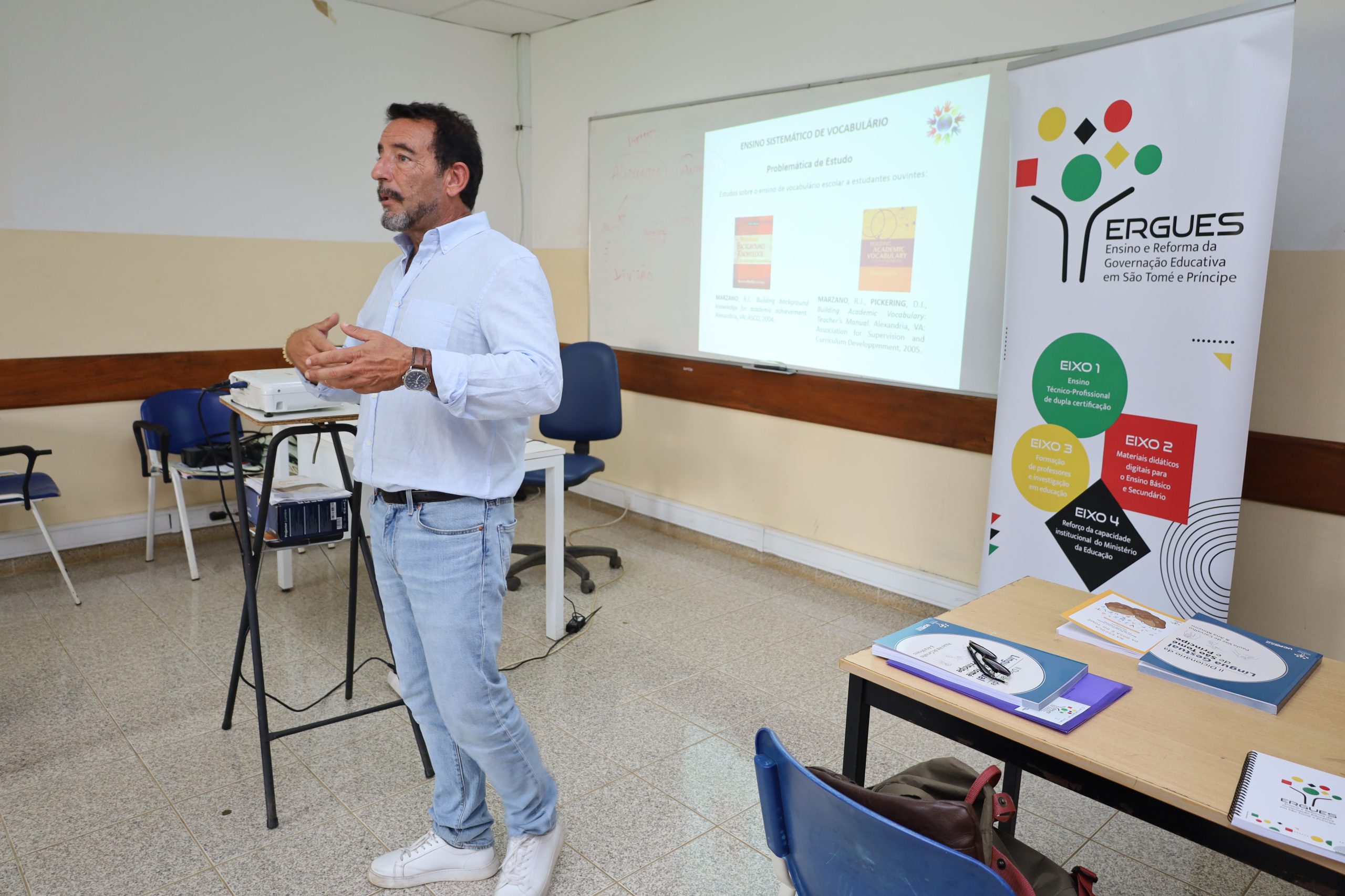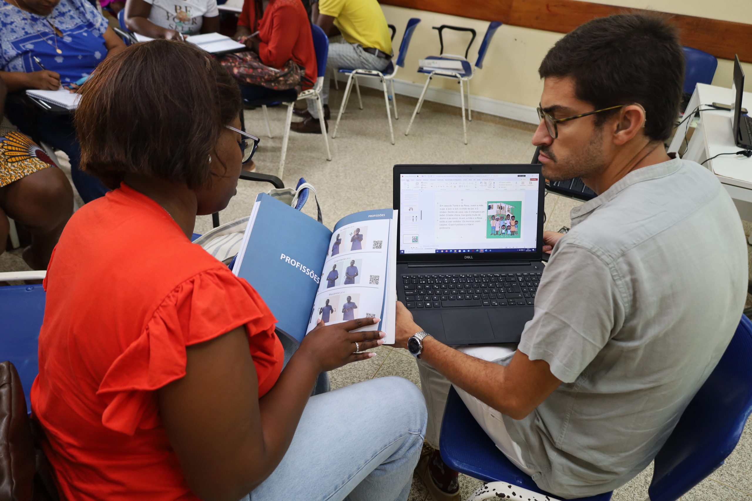 Nesta missão, destacou-se ainda a dinamização de dois cursos de formação na área da educação de surdos. “A educação de surdos é extremamente importante para proporcionar uma verdadeira inclusão”, segundo Adaimé Neto, docente e uma das formadoras dos Cursos “Educação de Surdos II” e “Língua Gestual de São Tomé e Príncipe II” (nível elementar), que decorreram nas manhãs dos dias 15 a 26 de setembro, no Centro de Formação Profissional Brasil-São Tomé e Príncipe. Estas formações, dirigidas a docentes dos ensinos básico e secundário, nomeadamente das escolas que acolhem alunos com surdez ou défice auditivo e que frequentaram os cursos nível I em 2024, foram dinamizadas por especialista da equipa da Universidade Católica Portuguesa, Paulo Vaz de Carvalho, Mara Moita e Sebastião Palha. Estes cursos visaram o aprofundamento de conhecimentos e competências no domínio do ensino e inclusão dos jovens surdos em sala de aula. Adaimé Neto considerou ainda que “esta formação é essencial para implementar a mudança no sistema educativo e na sociedade, permitindo que todos tenham as mesmas oportunidades na educação, acessibilidade e uma verdadeira Inclusão.”