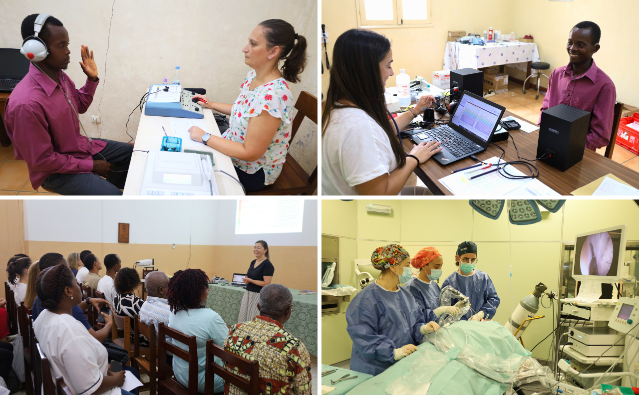 Foram realizadas 63 consultas de Otorrinolaringologia, 46 consultas de Audiologia, 50 consultas de Terapia de Fala (que contaram com a presença de professores de Ensino Especial com o objetivo de aprender estratégias para uma melhor integração), 39 consultas de Reabilitação Auditiva/Próteses e adaptação de 2 novas próteses auditivas. Foram avaliados 152 ouvidos através de exames audiométricos (timpanogramas, audiogramas tonais e potenciais evocados auditivos). Foram também realizadas 21 consultas de Anestesia, com o objetivo de agendamento cirúrgico durante a semana de missão, tendo sido operados 20 doentes, correspondendo a 22 procedimentos cirúrgicos.