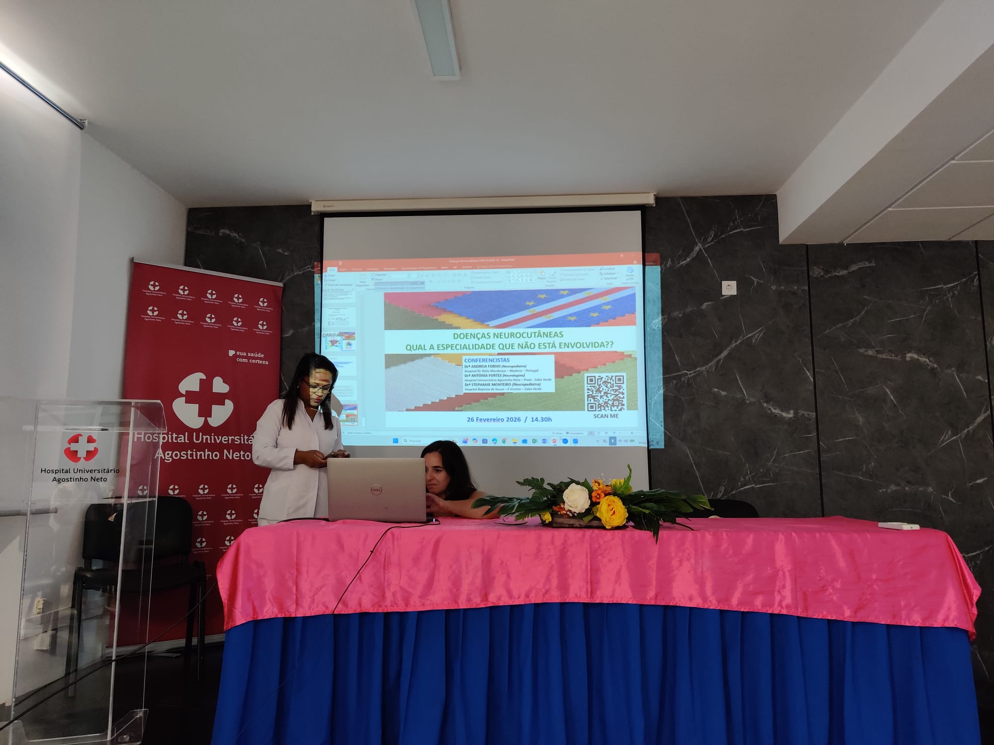 A missão integrou uma forte componente de capacitação, com a realização de duas sessões de formação, uma em cada hospital, dedicadas às doenças neurocutâneas.