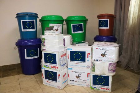 The European Union’s Tekki Fii project led by IMVF is actively supporting the national response to COVID-19. As schools re-open to students of 9th and 12th grades, the project today handed-over sanitary supplies and first aid kits to the Minister of Basic and Secondary Education. 25 schools in LRR, NBR, CRR and URR will benefit from this support.